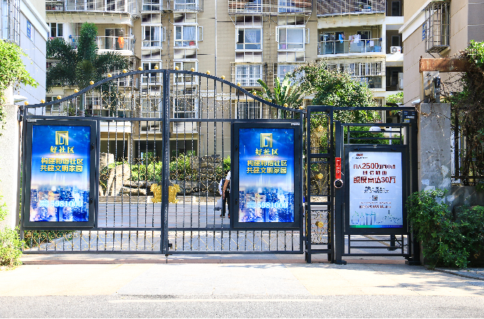 品牌營銷需要個性化升級,為此,我們設計了社區(qū)廣告門解決方案:好社區(qū)在各大住宅社區(qū) 安裝社區(qū)大門與智能門禁系統(tǒng),并在大門上裝設廣告燈箱。通過智能門禁系統(tǒng)與燈箱,形成與消費者線上線下的雙線互動閉環(huán),實現(xiàn)營銷升級目的。